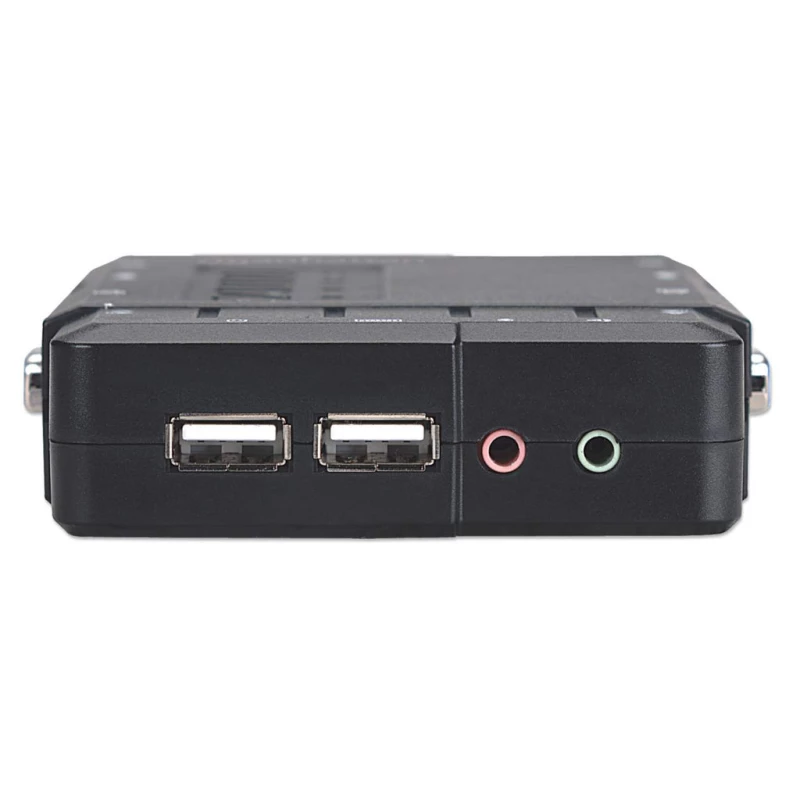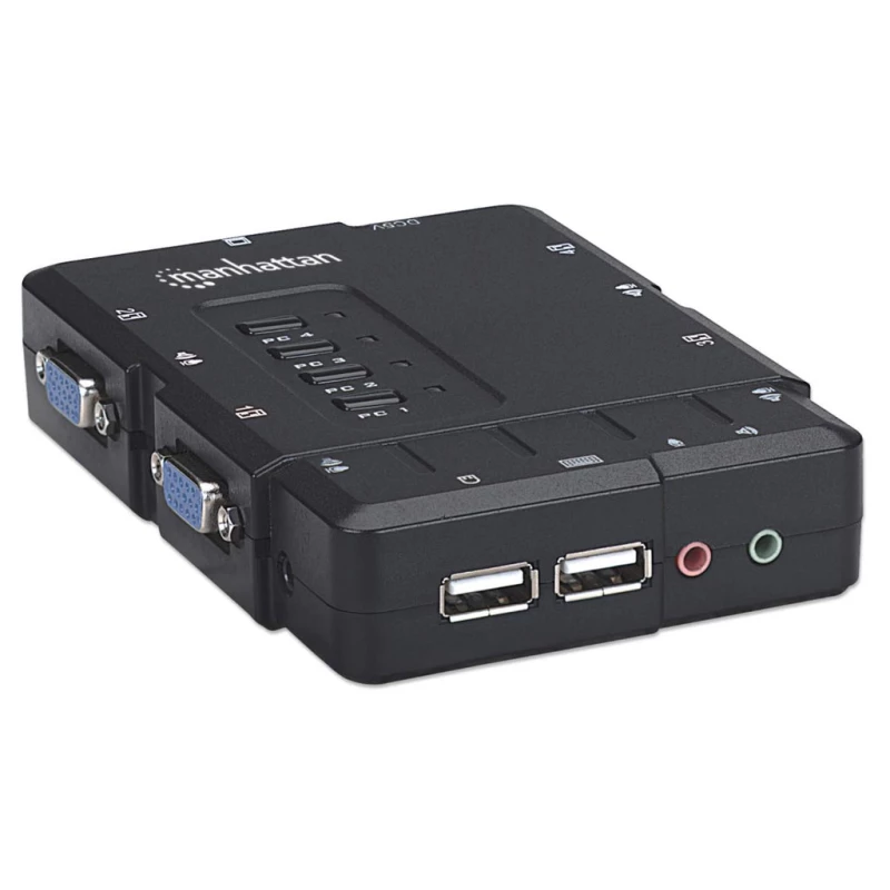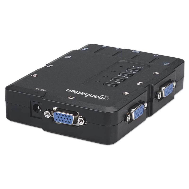 Manhattan Switch KVM Compacto 4 Puertos, 1600 x 900 Pixeles, HD+, Negro