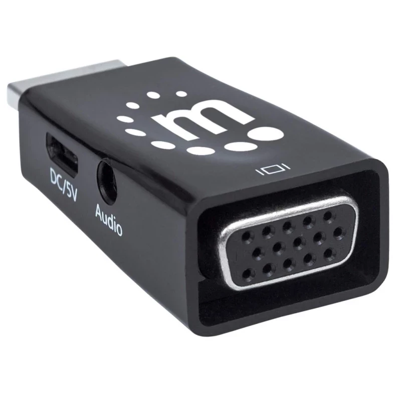 Manhattan Micro Convertidor HDMI a VGA con salida de audio, HDMI, VGA, 3.5mm, Negro