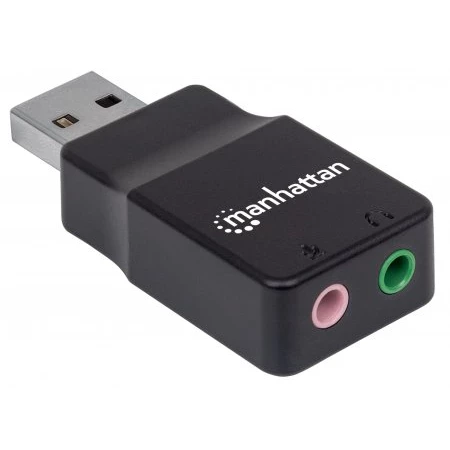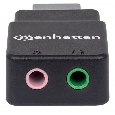 Manhattan Adaptador de Sonido Estéreo USB de Alta Velocidad. Conector 1: USB-A, Conector 2: 2 x 3.5 mm. Color del producto: Negro