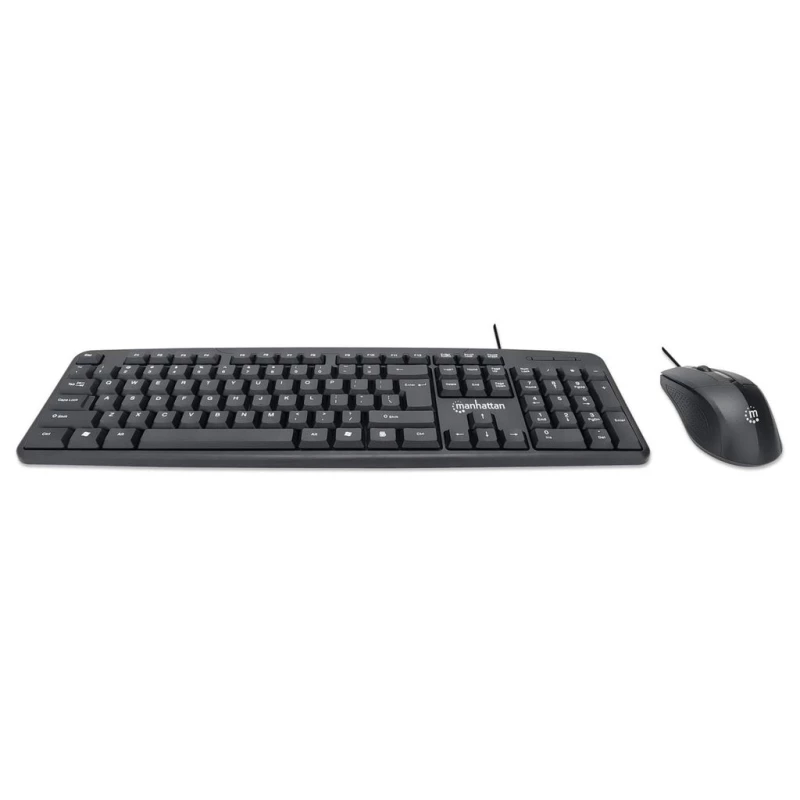 Teclado Manhattan Juego de teclado y mouse óptico, cableados, Tamaño completo (100%), USB, Interruptor de membrana, QWERTY, Negro, Ratón incluido
