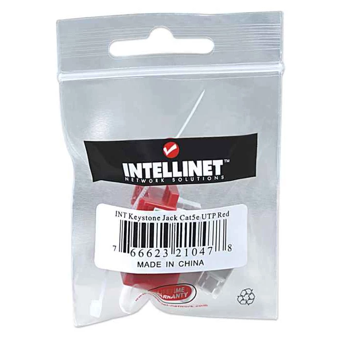 Intellinet JACK RJ45 CAT5E KEYSTONE DE IMPACTO ROJO. Tipo de construcción: Plano, Color del producto: Rojo, Conector 1: RJ-45. Ancho: 18 mm, Profundidad: 28.3 mm, Altura: 20.8 mm. Cantidad por paquete: 1 pieza(s)