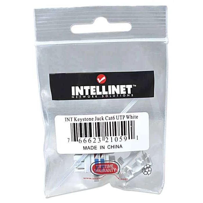Intellinet JACK RJ45 CAT6 KEYSTONE DE IMPACTO BLANCO. Tipo de construcción: Plano, Color del producto: Blanco, Conector 1: RJ-45. Ancho: 18 mm, Profundidad: 28.3 mm, Altura: 20.8 mm. Cantidad por paquete: 1 pieza(s)