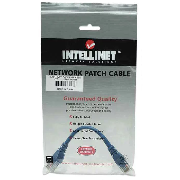 Intellinet Cable de red, Cat5e, UTP. Longitud de cable: 0.5 m, Cable estándar: Cat5e, Blindaje de cable: U/UTP (UTP), Conector 1: RJ-45, Conector 2: RJ-45, Contactos del conector chapado: Oro, Color del producto: Azul