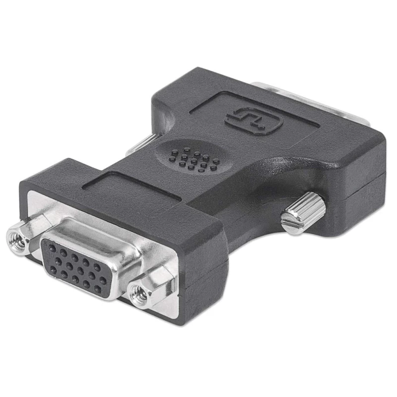 Manhattan Adaptador de Vídeo Digital. Conector 1: DVI-I, Conector 2: VGA, Contactos del conector chapado: Níquel. Color del producto: Negro