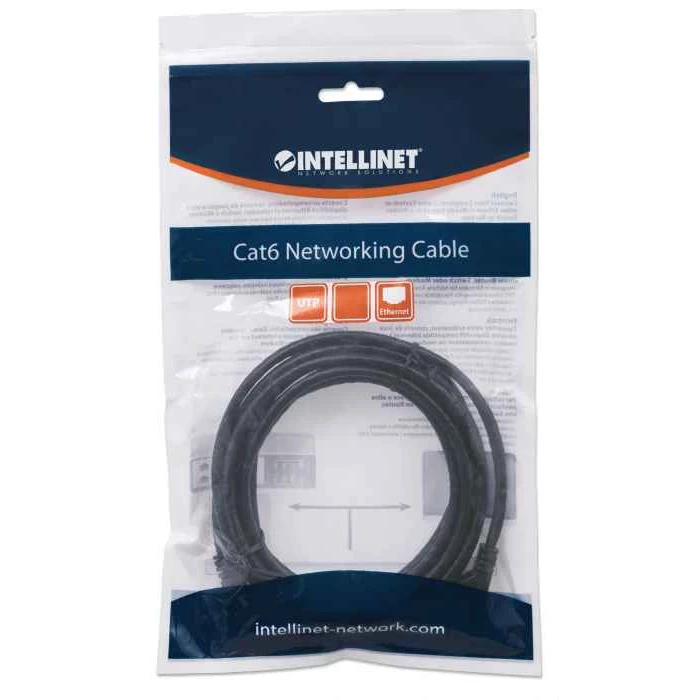 Intellinet Cable de red, Cat6, UTP. Longitud de cable: 1 m, Cable estándar: Cat6, Blindaje de cable: U/UTP (UTP), Conector 1: RJ-45, Conector 2: RJ-45, Contactos del conector chapado: Oro, Color del producto: Negro