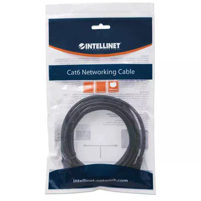 Intellinet Cable Patch Cat6, UTP. Longitud de cable: 5 m, Cable estándar: Cat6, Blindaje de cable: U/UTP (UTP), Conector 1: RJ-45, Conector 2: RJ-45, Contactos del conector chapado: Oro, Color del producto: Negro