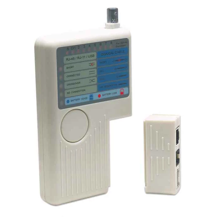 Intellinet Probador de Cables 4 en 1. Conectores compatibles: BNC, IEEE-1394, RJ-11, RJ-45, USB, Color del producto: Beige. Peso: 200 g. Ancho del paquete: 86 mm, Largo del paquete: 160 mm, Alto del paquete: 26 mm