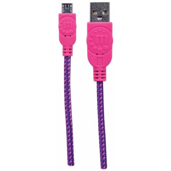 352741 Manhattan Cable Micro-B USB de Alta Velocidad con recubrimiento textil, 1.8 m, USB A, Micro-USB B, USB 2.0, Macho/Macho, Rosa, Púrpura