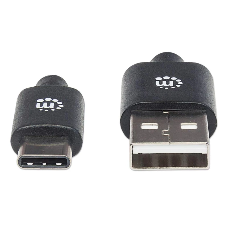 353298 Manhattan Cable para Dispositivos USB C de Alta Velocidad, 1 m, USB C, USB A, USB 2.0, Macho/Macho, Negro
