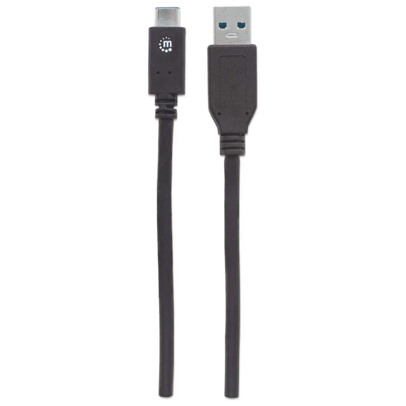 Manhattan Cable para Dispositivos USB-C de SúperVelocidad+. Longitud de cable: 1 m. Conector 1: USB A, Conector 2: USB C, Versión USB: USB 3.2 Gen 2 (3.1 Gen 2), Rango de transferencia de datos (max): 10 Gbit/s, Contactos del conector chapado: Níquel, Color del producto: Negro, Protegida magnéticamente