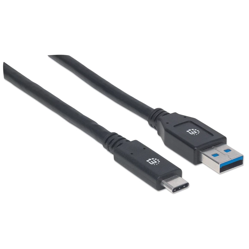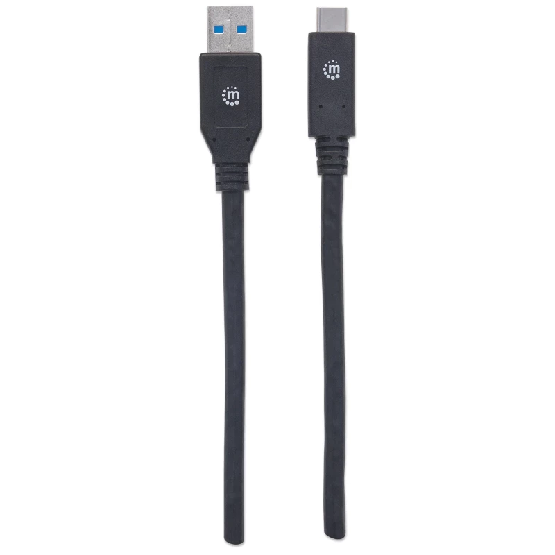 Manhattan Cable para Dispositivos USB-C de SúperVelocidad. Longitud de cable: 3 m. Conector 1: USB C, Conector 2: USB A, Versión USB: USB 3.2 Gen 1 (3.1 Gen 1), Rango de transferencia de datos (max): 5 Gbit/s, Contactos del conector chapado: Níquel, Color del producto: Negro, Protegida magnéticamente