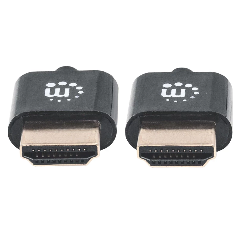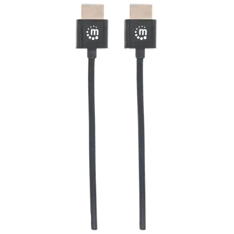 Manhattan Cable HDMI súper delgado de alta velocidad con Ethernet. Longitud de cable: 1.8 m, Conector 1: HDMI Tipo A (Estándar), Género del conector 1: Macho, Conector 2: HDMI Tipo A (Estándar), Género del conector 2: Macho, Contactos del conector chapado: Oro, 3D, Velocidad de transferencia de datos: 18 Gbit/s, Canal de retorno de audio (ARC), Color del producto: Negro