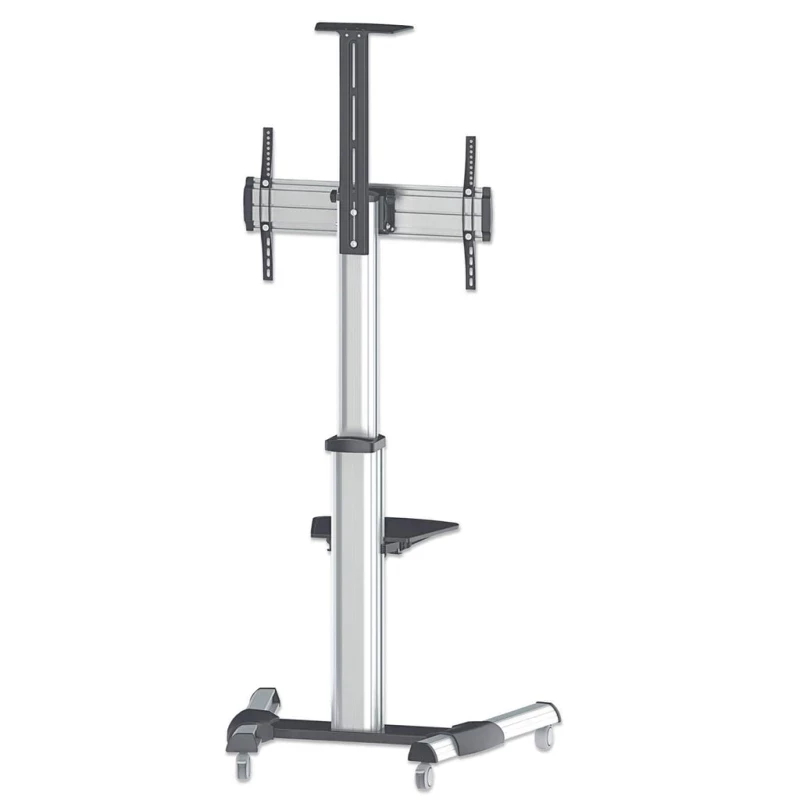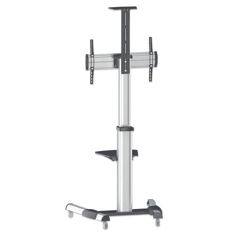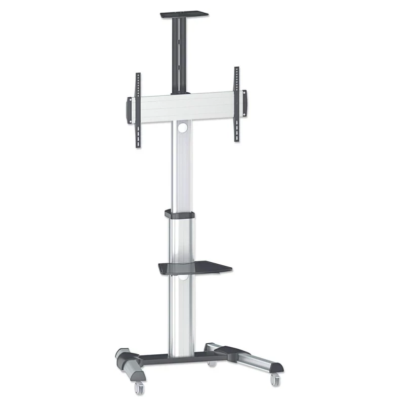 Manhattan Soporte para TV, de piso, tipo carrito, de alumino, con inclinación, pantallas planas de 37" a 70" de máximo 50 kg, 50 kg, 94 cm (37"), 177.8 cm (70"), 600 x 400 mm, Ajustes de altura, Negro, Plata