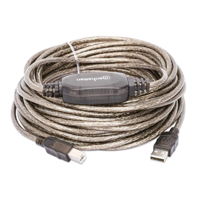 Manhattan Cable de Extensión Activa USB de Alta Velocidad, 11 m, USB A, USB B, USB 2.0, Macho/Macho, Plata