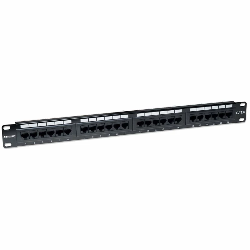 520959 Intellinet Panel de Parcheo Cat6, IEEE 802.3, IEEE 802.3ab, IEEE 802.3u, Ethernet rápido, Gigabit Ethernet, RJ-45, U/UTP (UTP), Negro, Montaje en bastidor