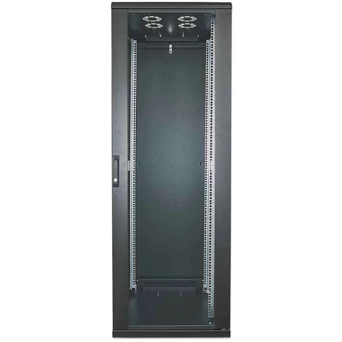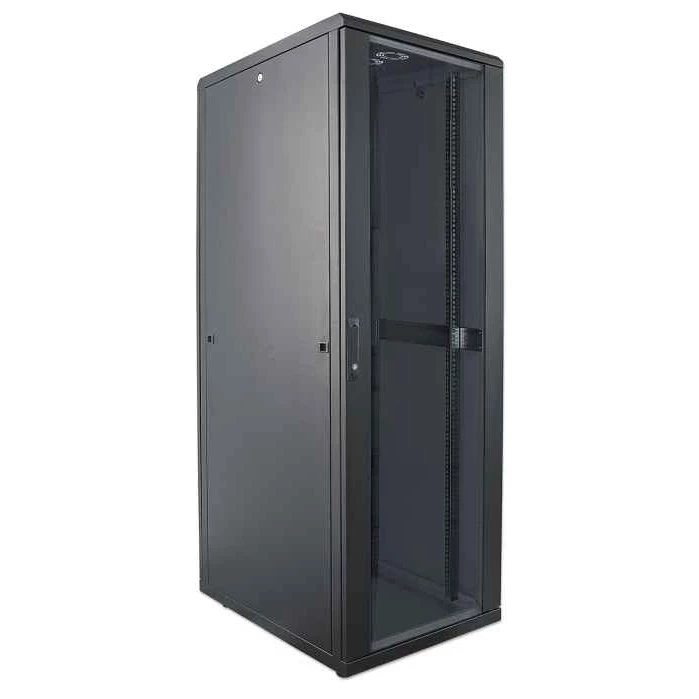Intellinet GABINETE 19" RACK CERRADO 26U PUERTA CRISTAL 600*800 FLATPACK. Tipo: Rack o bastidor independiente, Capacidad del rack: 26U, Capacidad máxima de peso: 1500 kg, Bloqueo del teclado, Patas ajustables, Código IP (International Protection): IP20. Peso: 79 kg. Color del producto: Negro