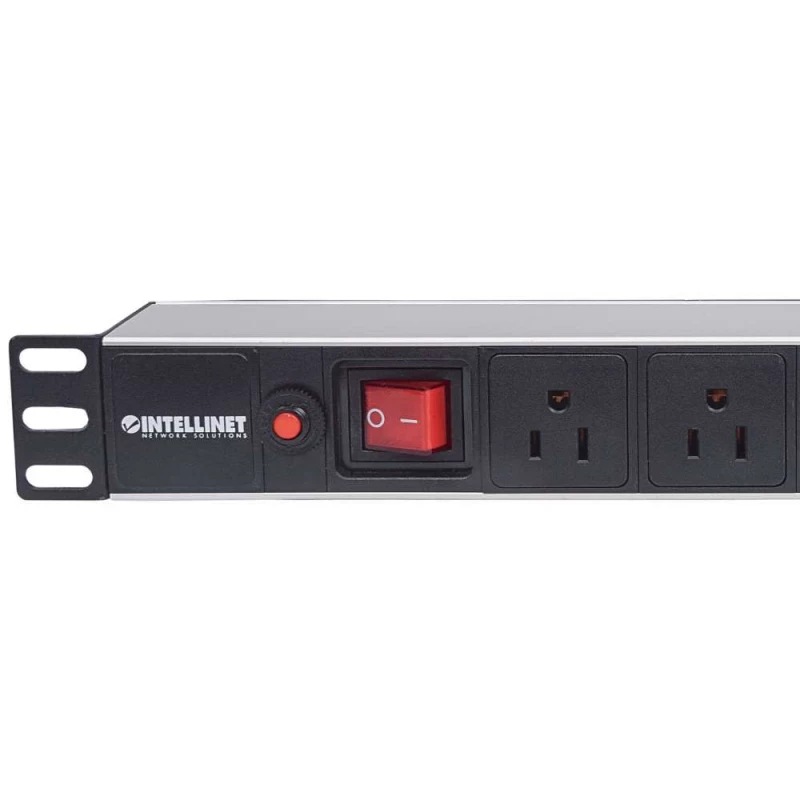 Intellinet Barra multicontacto con 8 salidas para montaje en 1U de rack de 19" - Tipo EU. Tipo: Barra eléctrica, Color del producto: Negro, Material de la cubierta: Aluminio. Conector: plug type B. Voltaje de entrada: 125 V, Cantidad de salidas AC: 8 salidas AC, Máxima corriente: 15 A. Tamaño (imperial): 48.3 cm (19"), Ancho: 44.4 mm, Profundidad: 44.5 mm. Cantidad por paquete: 1 pieza(s)
