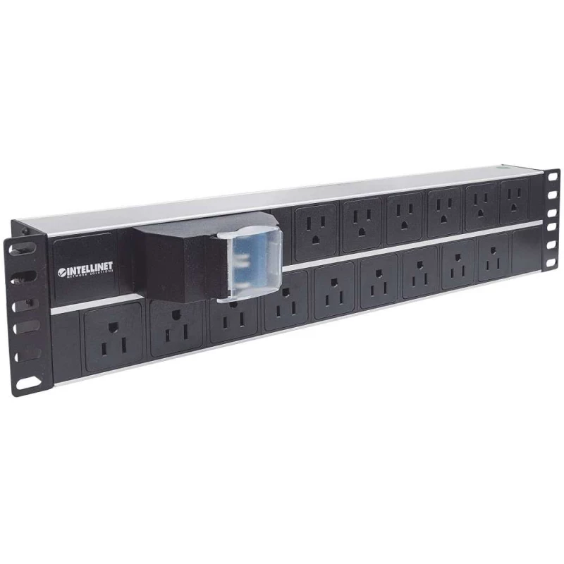 Intellinet Barra multicontactos de 15 salidas para montaje en 2U de rack de 19" - Enchufes Tipo EU (NEMA 5). Tipo: Barra eléctrica, Color del producto: Negro, Material de la cubierta: Aluminio. Conector: plug type B. Voltaje de entrada: 125 V, Cantidad de salidas AC: 15 salidas AC, Máxima corriente: 15 A. Tamaño (imperial): 48.3 cm (19"), Ancho: 44.4 mm, Profundidad: 88.8 mm. Cantidad por paquete: 1 pieza(s)
