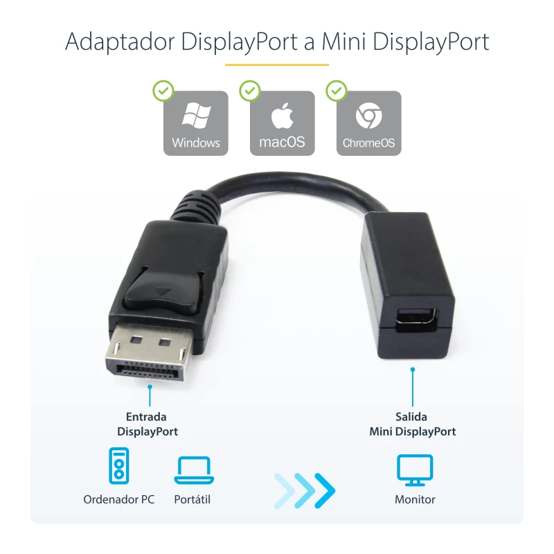 StarTech.com Cable de 15cm DisplayPort a Mini DisplayPort - de Vídeo 4K x 2K UHD - Cable de Extensión DP a mDP 1.2, 0.152 m, Mini DisplayPort, DisplayPort, Macho, Hembra, 3840 x 2400 Pixeles