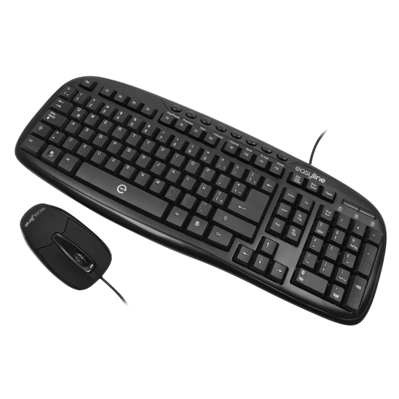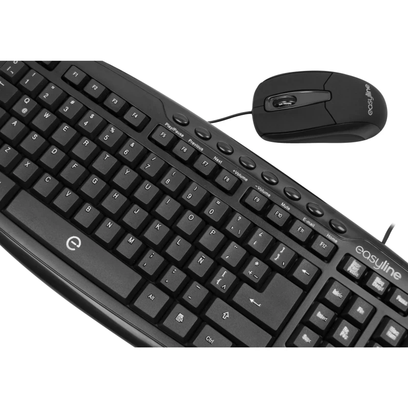 Teclado Easy Line Kit de teclado y mouse - Negro, 1000 DPI, Tamaño completo (100%), USB, QWERTY, Negro, Ratón incluido