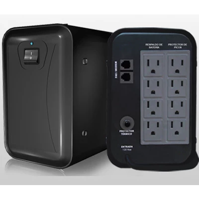 Complet MT605. Capacidad de potencia de salida (VA): 0.6 kVA, Potencia de salida: 300 W, Voltaje de entrada de operación (min): 90 V. Tipo de salida AC: NEMA 5–15R, Cantidad de salidas AC: 8 salidas AC. Tiempo típico de respaldo a carga completa: 5 min, Tiempo típico de respaldo a media carga: 18 min, Tiempo de recarga de la batería: 6 h. Factor de forma: Compacto, Color del producto: Negro. Ancho: 122 mm, Profundidad: 250 mm, Altura: 193 mm