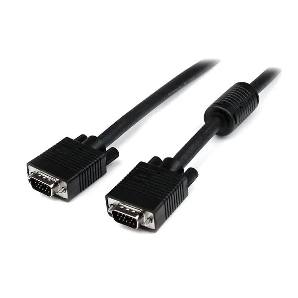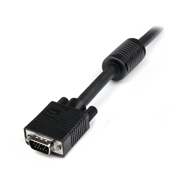 Este cable coaxial de video VGA (HD15 a HD15) de gran durabilidad elimina el denominado "ghosting" o efecto fantasma así como las imágenes borrosas inherentes a los cables VGA no coaxiales, al mismo tiempo que proporciona protección contra interferencias EMI utilizando núcleos de ferrita cerca de los extremos del conector.