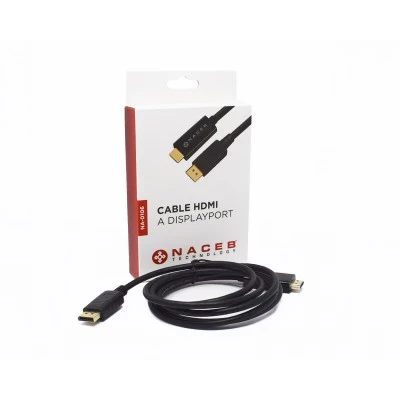 Naceb Technology NA-0106. Longitud de cable: 1.8 m, Conector 1: HDMI Tipo A (Estándar), Conector 2: DisplayPort. Ancho del paquete: 120 mm, Largo del paquete: 30 mm, Alto del paquete: 197 mm. Cantidad por paquete: 1 pieza(s)