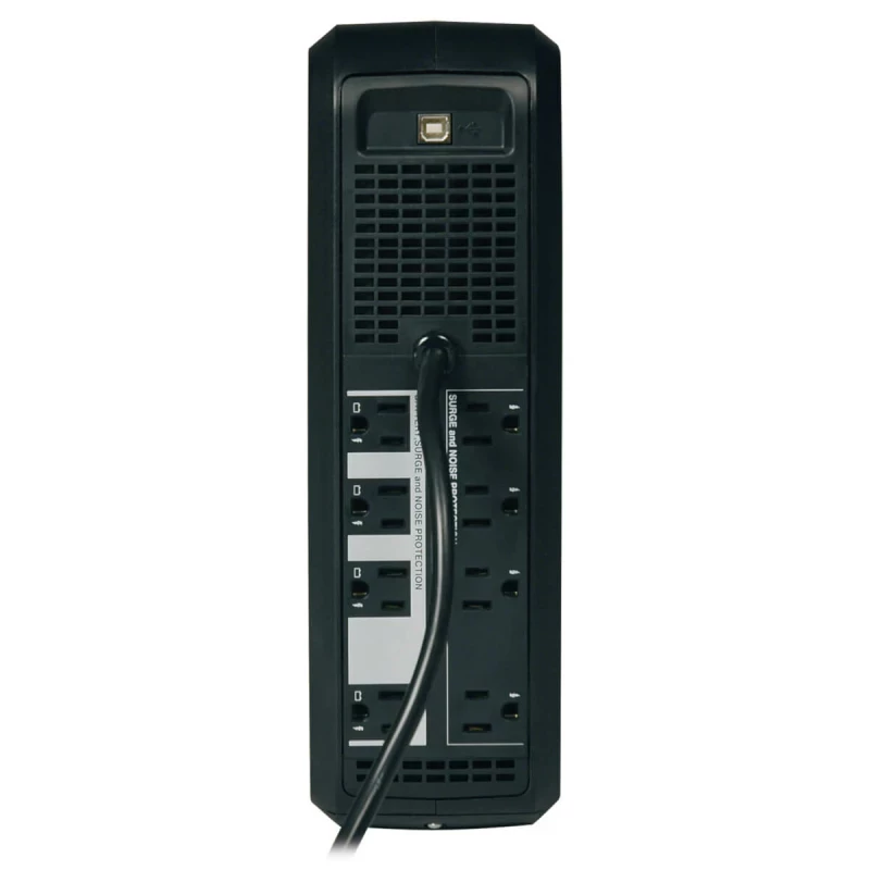Tripp Lite OMNI900LCD UPS OmniSmart interactivo de 120V, 900VA y 475W, torre, pantalla LCD, puerto USB. Topología UPS: Línea interactiva, Capacidad de potencia de salida (VA): 0.9 kVA, Potencia de salida: 475 W. Tipo de salida AC: NEMA 5–15R, Conector: NEMA 5-15P, Cantidad de salidas AC: 8 salidas AC. Tiempo típico de respaldo a carga completa: 3 min, Tiempo típico de respaldo a media carga: 10 min, Tiempo de recarga de la batería: 16 h. Factor de forma: Tower, Color del producto: Negro, Material de la cubierta: Acrilonitrilo butadieno estireno (ABS). Certificados de sustentabilidad: ENERGY STAR