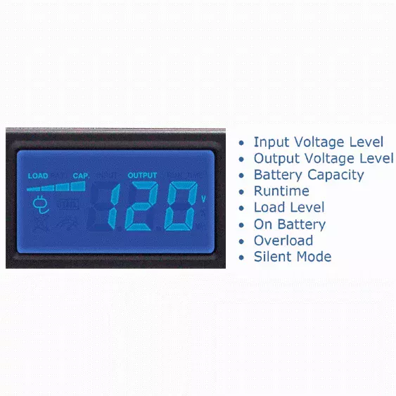 CyberPower OR1000LCDRM1U. Topología UPS: Línea interactiva, Capacidad de potencia de salida (VA): 1 kVA, Potencia de salida: 600 W. Tipo de salida AC: NEMA 5–15R, Conector: Acoplador C14. Tiempo típico de respaldo a carga completa: 3 min, Tiempo típico de respaldo a media carga: 13 min, Tiempo de recarga de la batería: 8 h. Factor de forma: Montaje en rack o Montaje en bastidor, Color del producto: Negro, Capacidad del rack: 1U. Ancho: 438 mm, Profundidad: 400.5 mm, Altura: 44.4 mm
