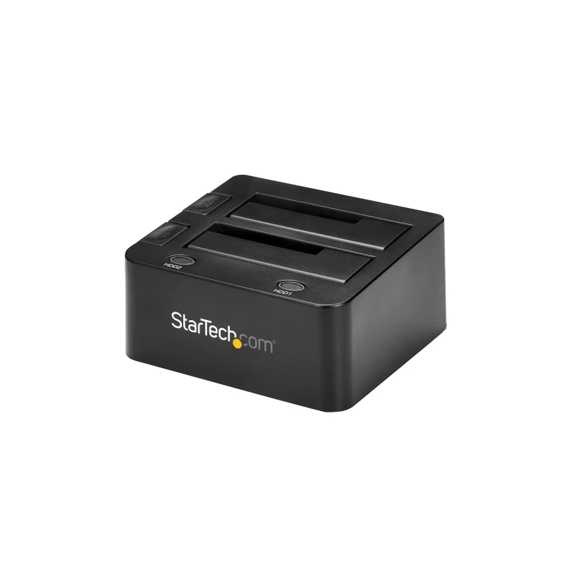 StarTech.com Docking Station de 2 Bahías USB 3.0 a SATA - Base de Acoplamiento USB de Discos Duros SSD SATA I/II/III de 2.5/3.5" - de Intercambio en Caliente - Carga Superior. Tipo de medio de almacenamiento: Unidad de disco duro, SSD, Interfaz de unidad de almacenamiento: SATA, Serial ATA II, Serial ATA III, Tamaños de almacenamiento en disco soportados: 2.5,3.5". Interfaz de host: USB 3.2 Gen 1 (3.1 Gen 1) Type-B. Rango de transferencia de datos (max): 6 Gbit/s, Color del producto: Negro, Materiales: Plástico. Voltaje de entrada AC: 100 - 240 V, Corriente de entrada: 1.3 A, Voltaje de salida: 12 V. Sistemas operativos Windows soportados: Windows 2000, Windows 8, Windows 8.1, Windows Vista Home Basic, Windows XP Home, Sistemas operativos Mac soportados: Mac OS X 10.6 Snow Leopard, Mac OS X 10.7 Lion, Mac OS X 10.8 Mountain Lion, Mac OS X 10.9 Mavericks