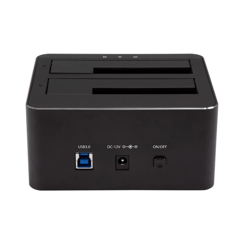 StarTech.com Docking Station USB 3.0 de 2 Bahías SATA de 2.5 o 3.5 Pulgadas para SSD o Disco Duro Base de Conexión para Unidades de Disco. Tipo de medio de almacenamiento: Unidad de disco duro, SSD, Interfaz de unidad de almacenamiento: SATA, Serial ATA II, Serial ATA III, Tamaños de almacenamiento en disco soportados: 2.5,3.5". Interfaz de host: USB 3.2 Gen 1 (3.1 Gen 1) Type-B. Rango de transferencia de datos (max): 6 Gbit/s, Color del producto: Negro, Materiales: Aluminio, Plástico. Voltaje de entrada AC: 100 - 240 V, Corriente de entrada: 1.5 A, Voltaje de salida: 12 V. Ancho: 130 mm, Profundidad: 114 mm, Altura: 62 mm