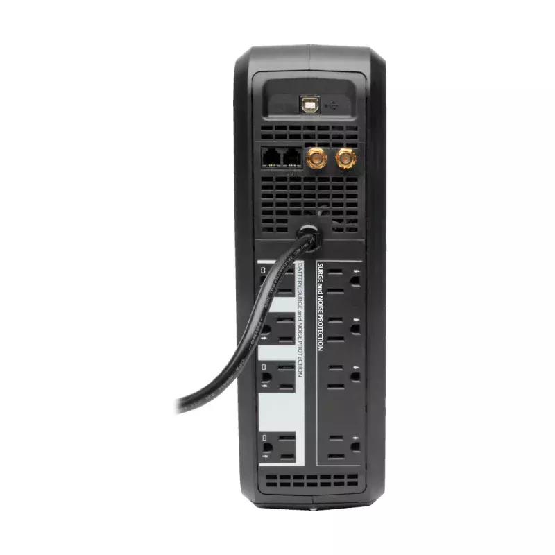 Tripp Lite SMART1000LCD UPS SmartPro LCD Interactivo de 120V 1000VA 500W, AVR, Torre, USB, Protección TEL/DSL/Coaxial, 8 Tomacorrientes. Topología UPS: Línea interactiva, Capacidad de potencia de salida (VA): 1 kVA, Potencia de salida: 500 W. Tipo de salida AC: NEMA 5–15R, Conector: NEMA 5-15P, Cantidad de salidas AC: 8 salidas AC. Tiempo típico de respaldo a carga completa: 3 min, Tiempo típico de respaldo a media carga: 10 min, Tiempo de recarga de la batería: 16 h. Factor de forma: Tower, Color del producto: Negro, Material de la cubierta: Acrilonitrilo butadieno estireno (ABS). Ancho: 93 mm, Profundidad: 183.9 mm, Altura: 300.7 mm