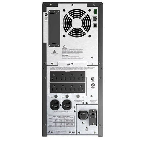 APC SMT3000C. Topología UPS: Línea interactiva, Capacidad de potencia de salida (VA): 2.88 kVA, Potencia de salida: 2700 W. Tipo de salida AC: NEMA 5-15R, NEMA 5–20R, Conector: NEMA L5-30P, Cantidad de salidas AC: 10 salidas AC. Tecnología de batería: Sealed Lead Acid (VRLA), Duración de la batería (máx): 5 Año(s), Tiempo de recarga de la batería: 3 h. Factor de forma: Tower, Color del producto: Negro, Longitud de cable: 1.83 m. Ancho: 196 mm, Profundidad: 544 mm, Altura: 432 mm