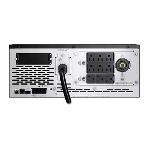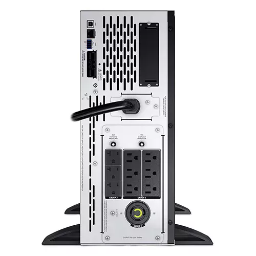 APC SMX3000LV. Capacidad de potencia de salida (VA): 3 kVA, Potencia de salida: 2700 W, Forma de onda: Seno. Tipo de salida AC: NEMA 5–15R, NEMA 5–20R, NEMA L5-30R, Conector: NEMA L5-30P, Cantidad de salidas AC: 10 salidas AC. Tecnología de batería: Sealed Lead Acid (VRLA), Tiempo de recarga de la batería: 3 h. Factor de forma: Montaje en rack/Torre o Montaje en bastidor/Torre, Color del producto: Negro, Capacidad del rack: 2U. Ancho: 178 mm, Profundidad: 483 mm, Altura: 432 mm