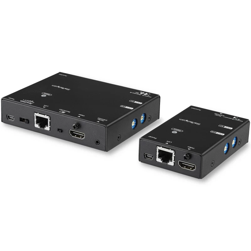 StarTech.com Kit Extensor HDMI por IP con Compresión Avanzada de Video. Tipo: Transmisor y receptor AV, Máxima resolución: 1920 x 100 Pixeles, Tipos de cable soportados: Cat5e, Cat6. Tecnología de conectividad: Alámbrico, Tipo de conector USB: Mini-USB B, Entrada de audio: 3.5 mm. Voltaje de entrada AC: 100 - 240 V, Voltaje de operación: 5 V, Corriente de entrada: 0.3 A. Peso: 3.2 kg. Ancho del paquete: 92 mm, Largo del paquete: 108 mm, Alto del paquete: 24 mm