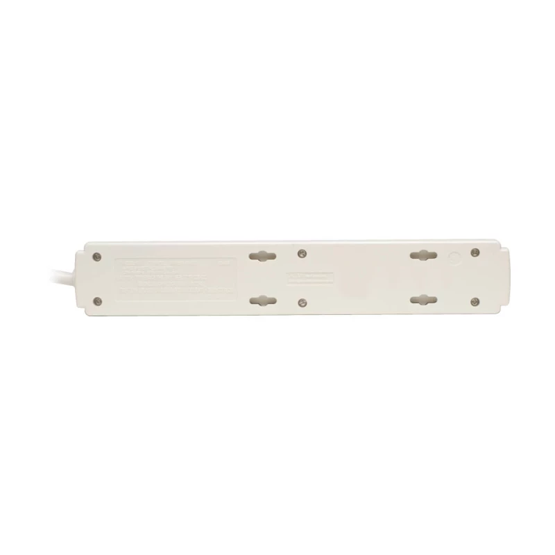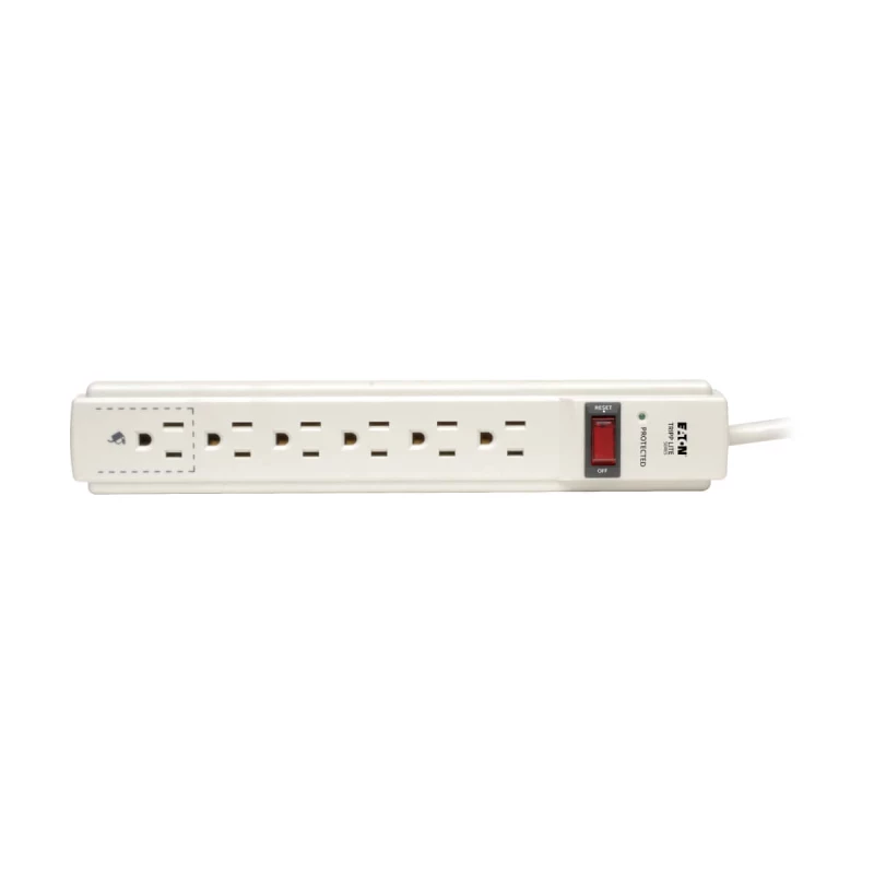 Tripp Lite TLP604TEL Protector contra sobretensiones Protect It!, de 6 tomacorrientes, 1.2 m [4 pies]. Cable, 790 Joules, protección para teléfono/fax/módem. Índice de aumento de energía: 790 J, Cantidad de salidas AC: 6 salidas AC, Tipo de salida AC: NEMA 5–15R. Conector: NEMA 5–15P. Color del producto: Gris, Funciones de protección de sobrecarga: Fax, Módem, Teléfono, País de origen: China. Longitud de cable: 1.2 m, Peso: 370 g, Ancho: 47 mm. Certificación: UL1449, UL1363, UL497A, FCC 68, cUL