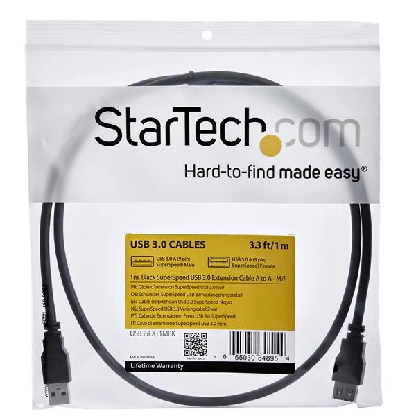 USB3SEXT1MBK StarTech.com Cable 1m Extensión Alargador USB 3.0 SuperSpeed - Macho a Hembra USB A - Extensor - Negro, 1 m, USB A, USB A, USB 3.2 Gen 1 (3.1 Gen 1), 5000 Mbit/s, Negro