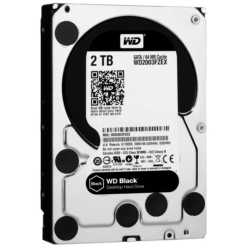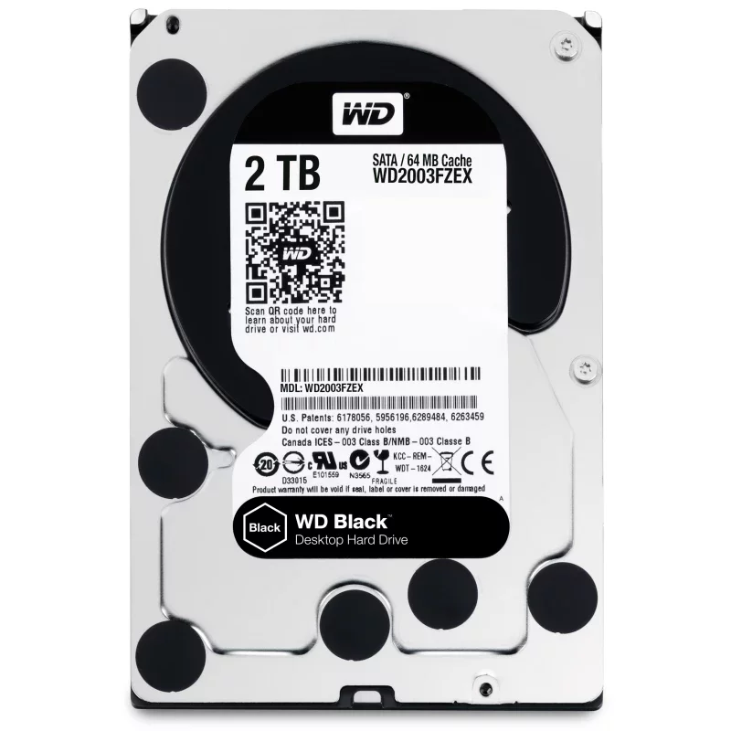 Western Digital Black. Capacidad del HDD: 2 TB, Velocidad de rotación del HDD: 7200 RPM, Tamaño del búfer de la unidad de almacenamiento: 64 MB, Tamaño del HDD: 3.5", Interfaz: Serial ATA III