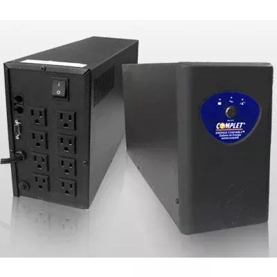 Complet PC3300. Capacidad de potencia de salida (VA): 3 kVA, Potencia de salida: 1650 W, Voltaje de entrada de operación (min): 90 V. Tipo de salida AC: NEMA 5–15R, Cantidad de salidas AC: 8 salidas AC. Tiempo típico de respaldo a carga completa: 4 min, Tiempo típico de respaldo a media carga: 15 min, Tiempo de recarga de la batería: 6 h. Factor de forma: Compacto, Color del producto: Negro. Ancho: 130 mm, Profundidad: 500 mm, Altura: 220 mm