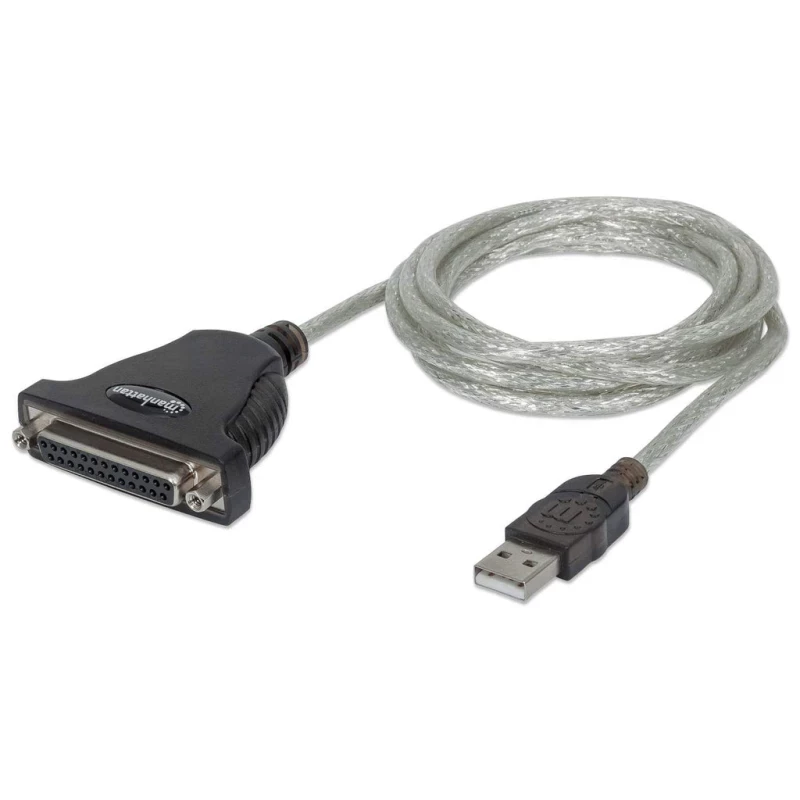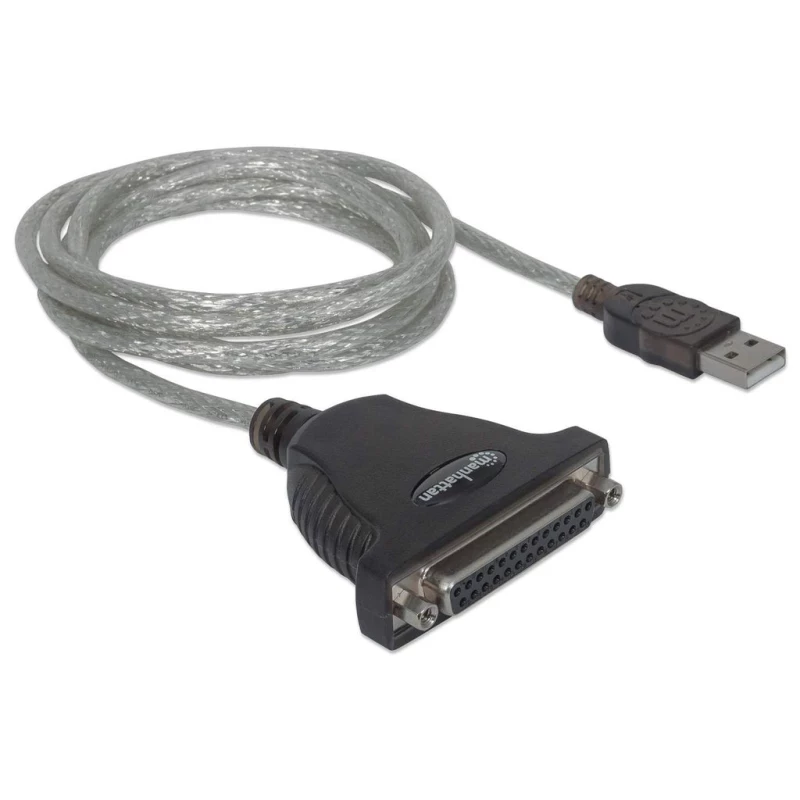 Manhattan Convertidor para Impresora de USB Full-Speed a Paralelo DB25, Negro, Plata, USB A, Parallel; 25-pin, 1.8 m, Macho/Hembra, 261 g