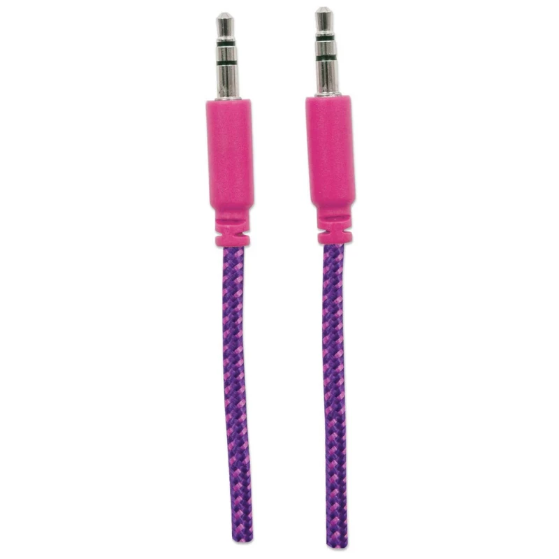 352826 Manhattan Cable de audio con recubrimiento textil, 3,5mm, Macho, 3,5mm, Macho, 1 m, Rosa, Púrpura