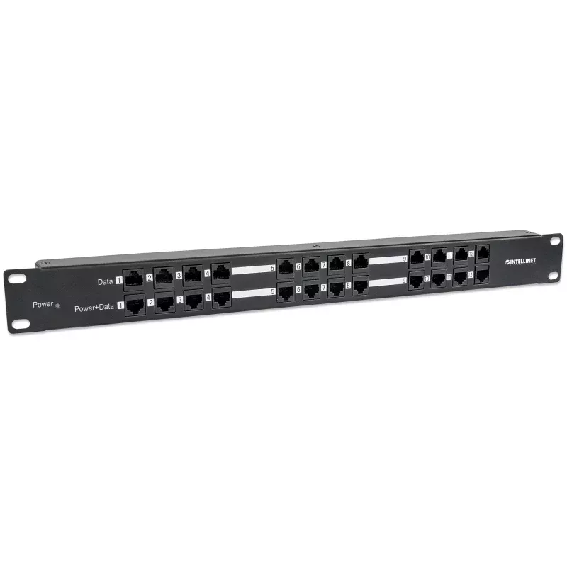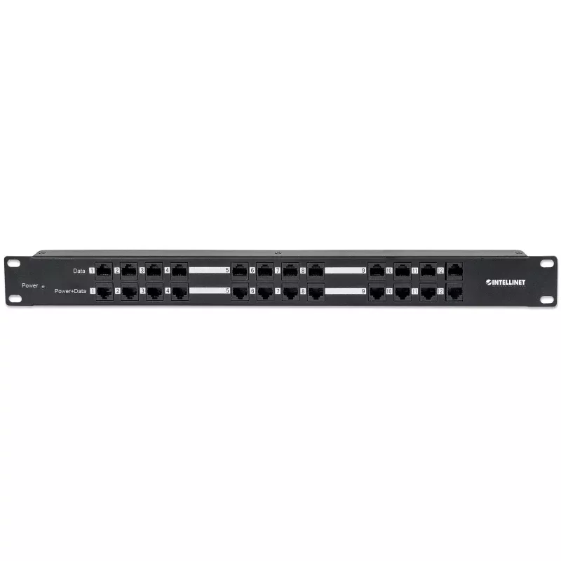 Intellinet Patch Panel de 12 puertos Passive PoE, RJ-45, Cat5e, Negro, Metal, Montaje en bastidor, 1U
