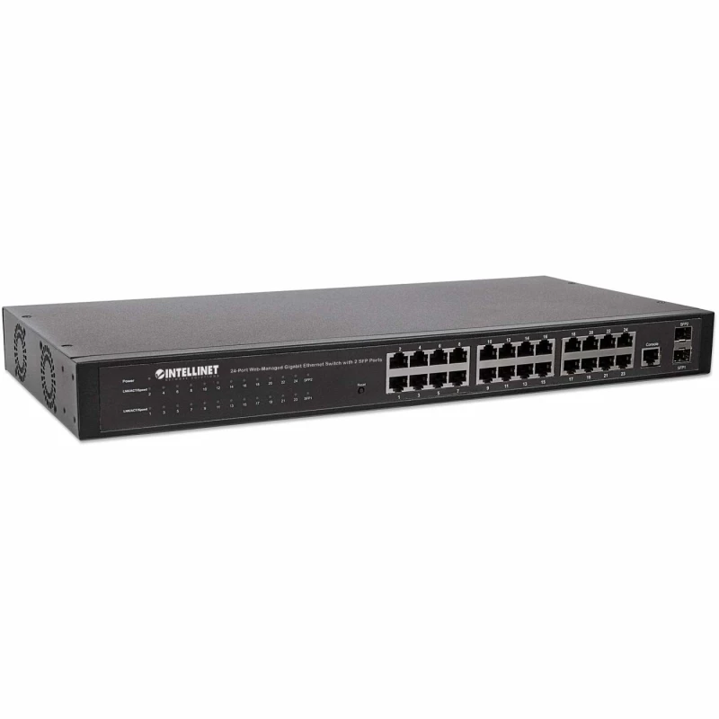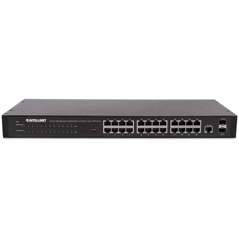 Switch Intellinet Switch de 24 Puertos Gigabit Ethernet Administrable por Web con 2 puertos SFP, Gestionado, Gigabit Ethernet (10/100/1000), Bidireccional completo (Full duplex), Montaje en rack, 1U