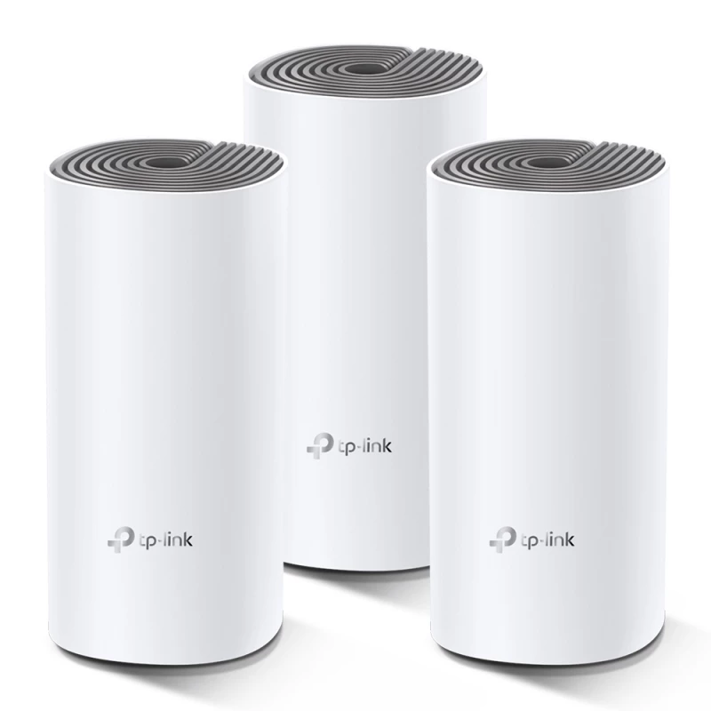 TP-Link Deco E4 (3-pack). Color del producto: Blanco, Gris, Tipo de antena: Interno, Tipo de producto: Sistema de malla. Banda Wi-Fi: Doble banda (2,4 GHz / 5 GHz), Máximo estándar Wi-Fi: Wi-Fi 5 (802.11ac), Tasa de transferencia de datos WLAN (máx.): 1167 Mbit/s. Seguridad con cortafuegos: SPI Firewall. Voltaje de entrada AC: 100 - 240 V, Corriente de entrada del adaptador de CA: 0.3 A, Frecuencia de entrada AC: 50 - 60 Hz. Certificados de cumplimiento: RoHS, CE, Certificación: FCC, IC, NCC, BSMI, IDA,RCM, JPA, JRF, VCCI, KC