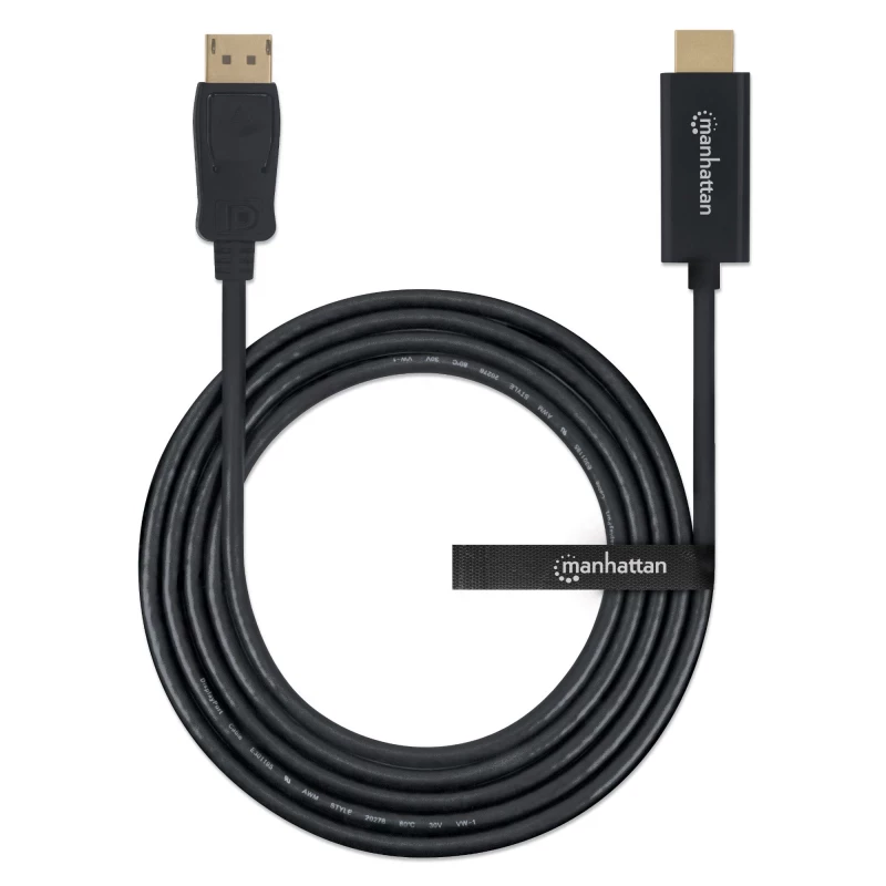 Manhattan Cable DisplayPort a HDMI 1080p, 1.8 m, DisplayPort, HDMI, Macho, Macho, Derecho
