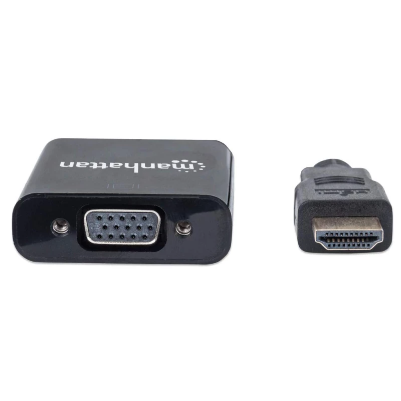 Manhattan Convertidor HDMI a VGA. Longitud de cable: 0.3 m, Conector 1: HDMI Tipo A (Estándar), Conector 2: VGA (D-Sub). Peso: 30 g, Ancho: 45 mm, Profundidad: 227 mm. Cantidad por paquete: 1 pieza(s), Tipo de empaque: Blister