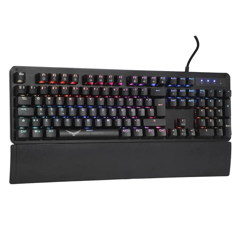 Naceb Technology Black Cobra. Formato del teclado: Tamaño completo (100%). Estilo de teclado: Derecho. Tecnología de conectividad: Alámbrico, Interfaz del dispositivo: USB, Interruptor del teclado: Interruptor mecánico. Tipo de retroiluminación: LED RGB, Descansa muñecas. Longitud de cable: 1.8 m. Uso recomendado: Juego. Color del producto: Negro