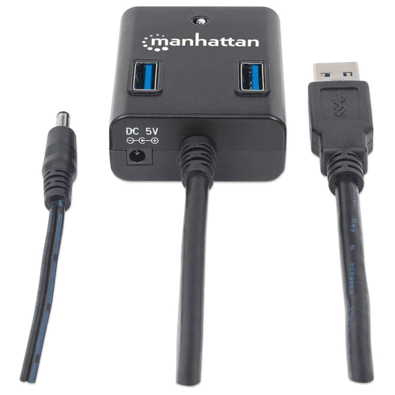 Manhattan Hub USB 3.0 de Supervelocidad. Interfaz de host: USB 3.2 Gen 1 (3.1 Gen 1) Type-A, Interfaces de concentradores: USB 3.2 Gen 1 (3.1 Gen 1) Type-A. Velocidad de transferencia de datos: 5000 Mbit/s, Color del producto: Negro, Material de la cubierta: Plástico. Tipo de fuente de alimentación: Corriente alterna, Voltaje de entrada: 100 - 240 V, Corriente de entrada: 0.6 A. Ancho: 45 mm, Profundidad: 55 mm, Altura: 20 mm. Cantidad por paquete: 1 pieza(s), Tipo de empaque: Blister