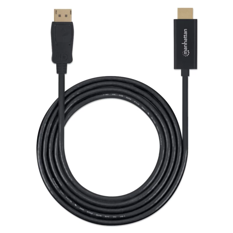 Manhattan Cable DisplayPort a HDMI 1080p, 1 m, DisplayPort, HDMI, Macho, Macho, Derecho