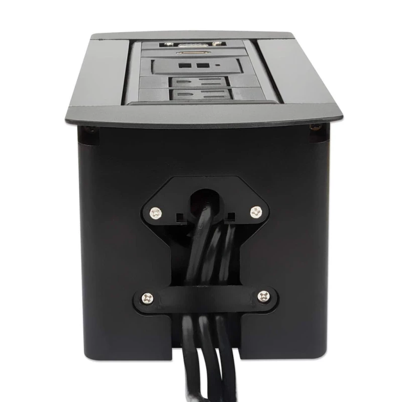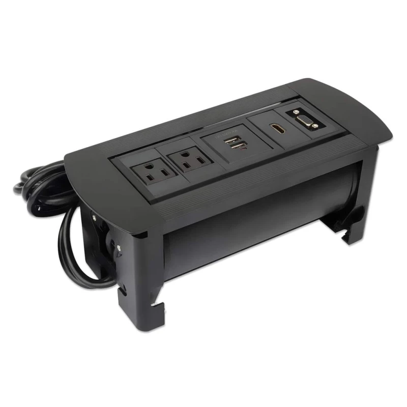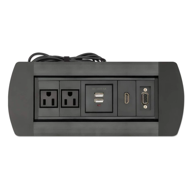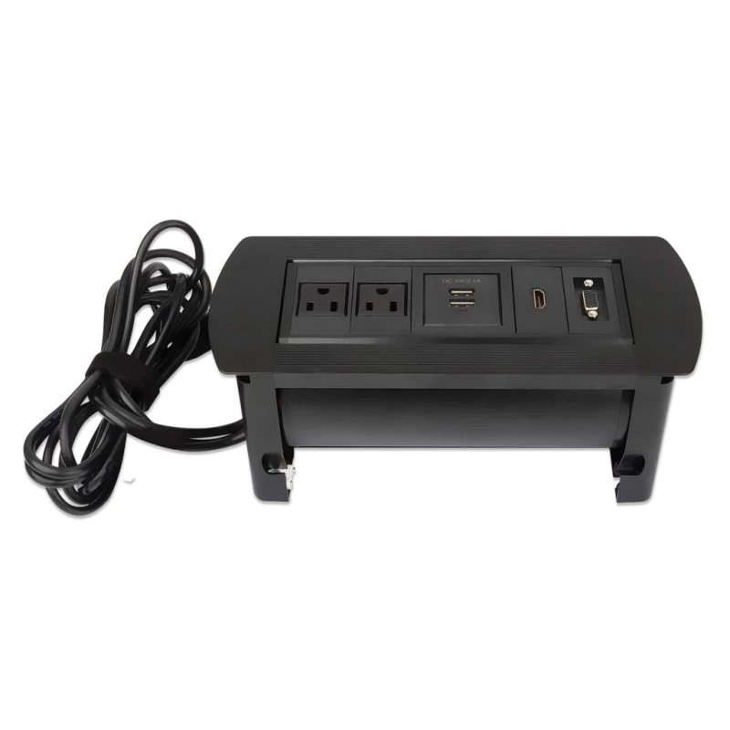 Manhattan Caja de conexión para mesa. Longitud de cable: 1.5 m, Colocación compatible: Interior, Color del producto: Negro. Cantidad de salidas AC: 2 salidas AC. Voltaje de entrada AC: 100 - 240 V, Frecuencia de entrada AC: 50 - 60 Hz, Funciones de protección de poder: Sobrecorriente, Sobrecalentamiento, Sobrecarga. Ancho: 254 mm, Profundidad: 110 mm, Altura: 104 mm. Número de productos incluidos: 1 pieza(s)